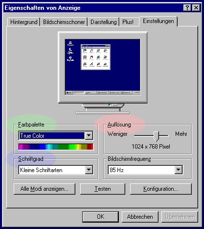 installierten Grafikkarte ab. Wählen Sie eine hohe Auflösung, um möglichst viel auf dem